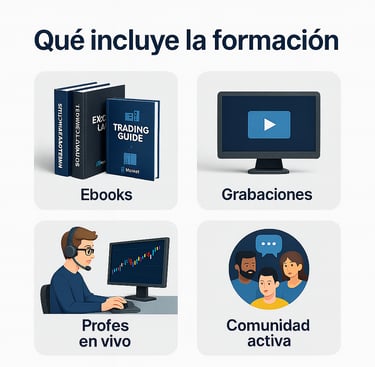 Todo con práctica diaria, clases en vivo y seguimiento continuo. Ya que toda la Academia esta preparada para arrancar desde 0 sin experiencia previa, y si la tenes, podes reforzarla con el contenido y estrategias preparadas para operar.